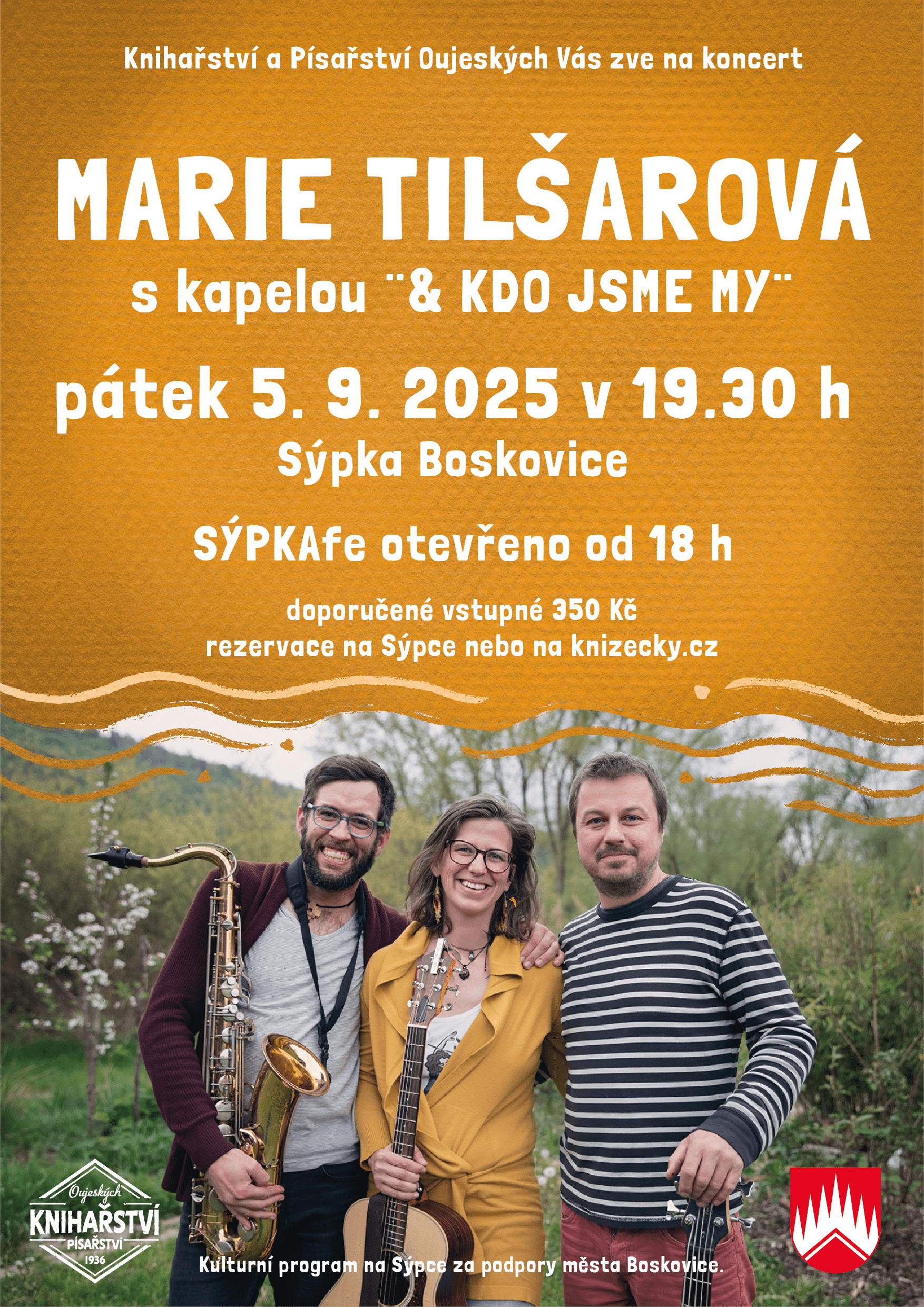 Knihařství a Písařství Oujeských Vás zve na koncert Marie Tilšarové s kapelou "& KDO JSME MY".