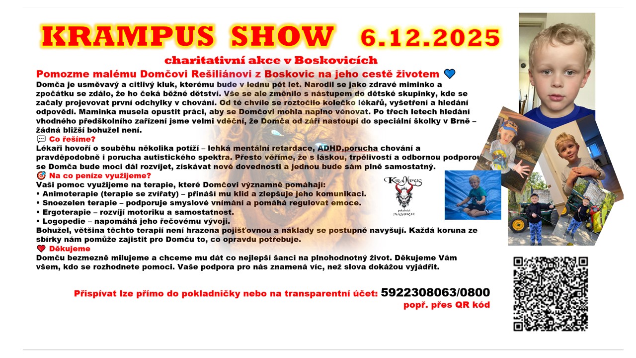 Můžete se těšit nejen na Krampus show ale i na doprovodný program, občerstvení, pekelné skupiny, focení s čerty a mnohé další…