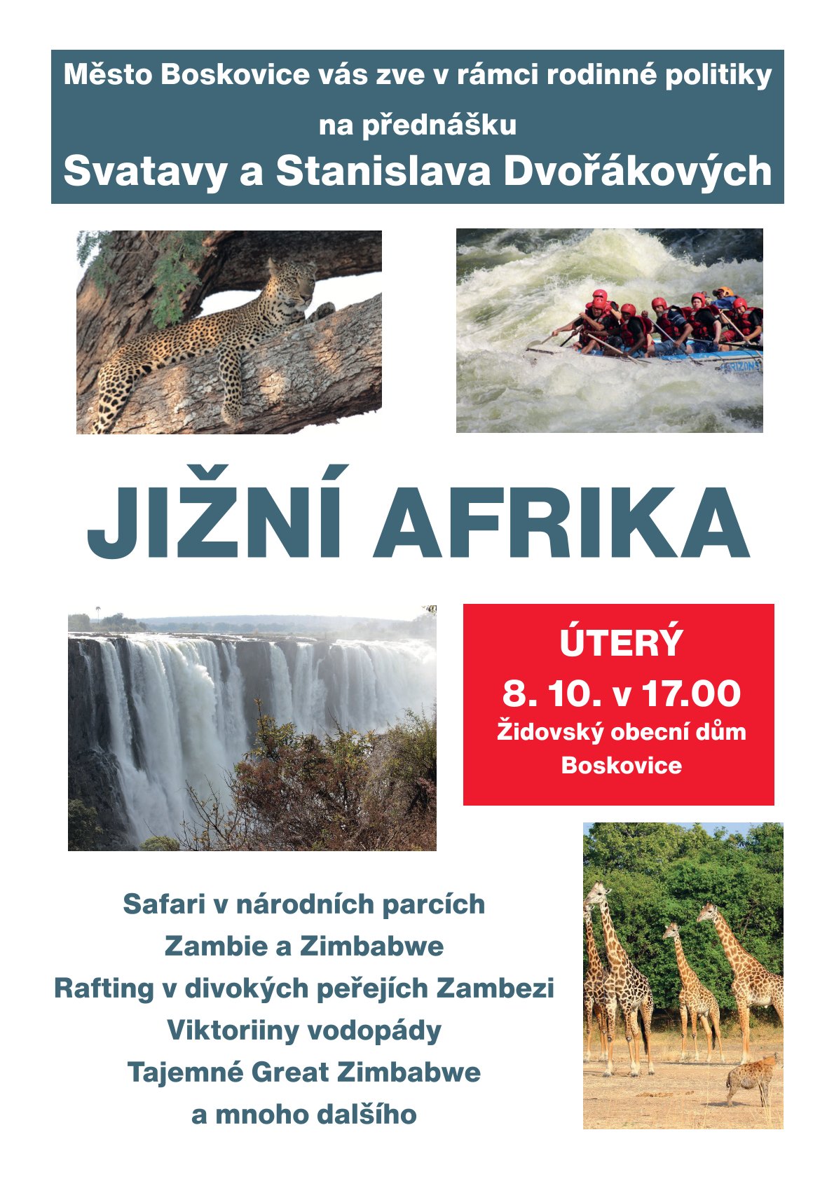 V úterý 8. října v 17.00 hodin v Židovském obecním domě můžete s manželi Dvořákovými cestovat po Jižní Africe.