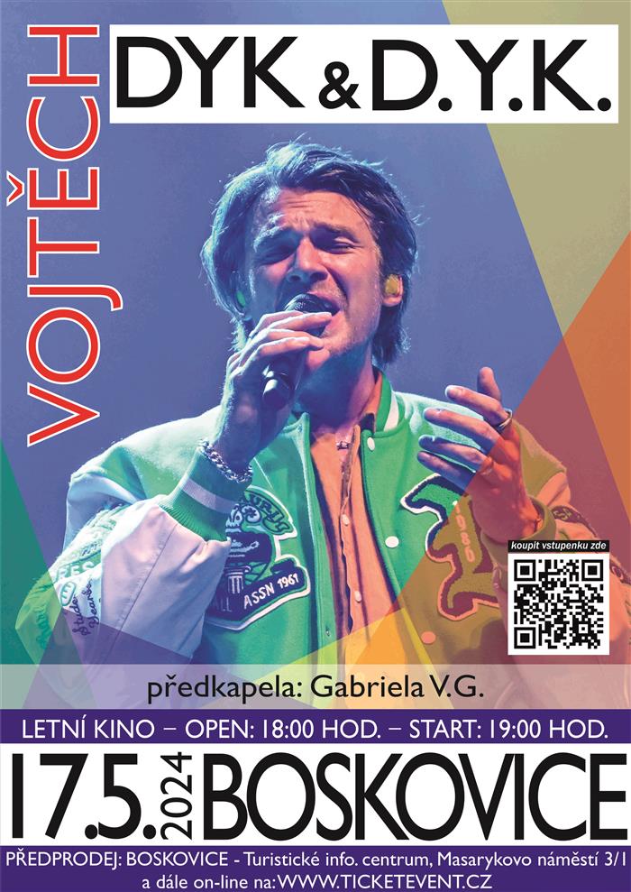 koncert Vojty Dyka a kapely D.Y.K. v Letním kině v Boskovicích, který se měl uskutečnit dne 17.5.2024 je přeložen na náhradní termín 23.5.2025. Storno vstupenek je možné pouze v místě zakoupení. Částka za vstupenky bude vyplacena v plné výši na účet, ze kterého bylo placeno. V případě platby v hotovosti, je možné nárokovat vrácení částky oproti vstupenkám v Informačním centru v Boskovicích.