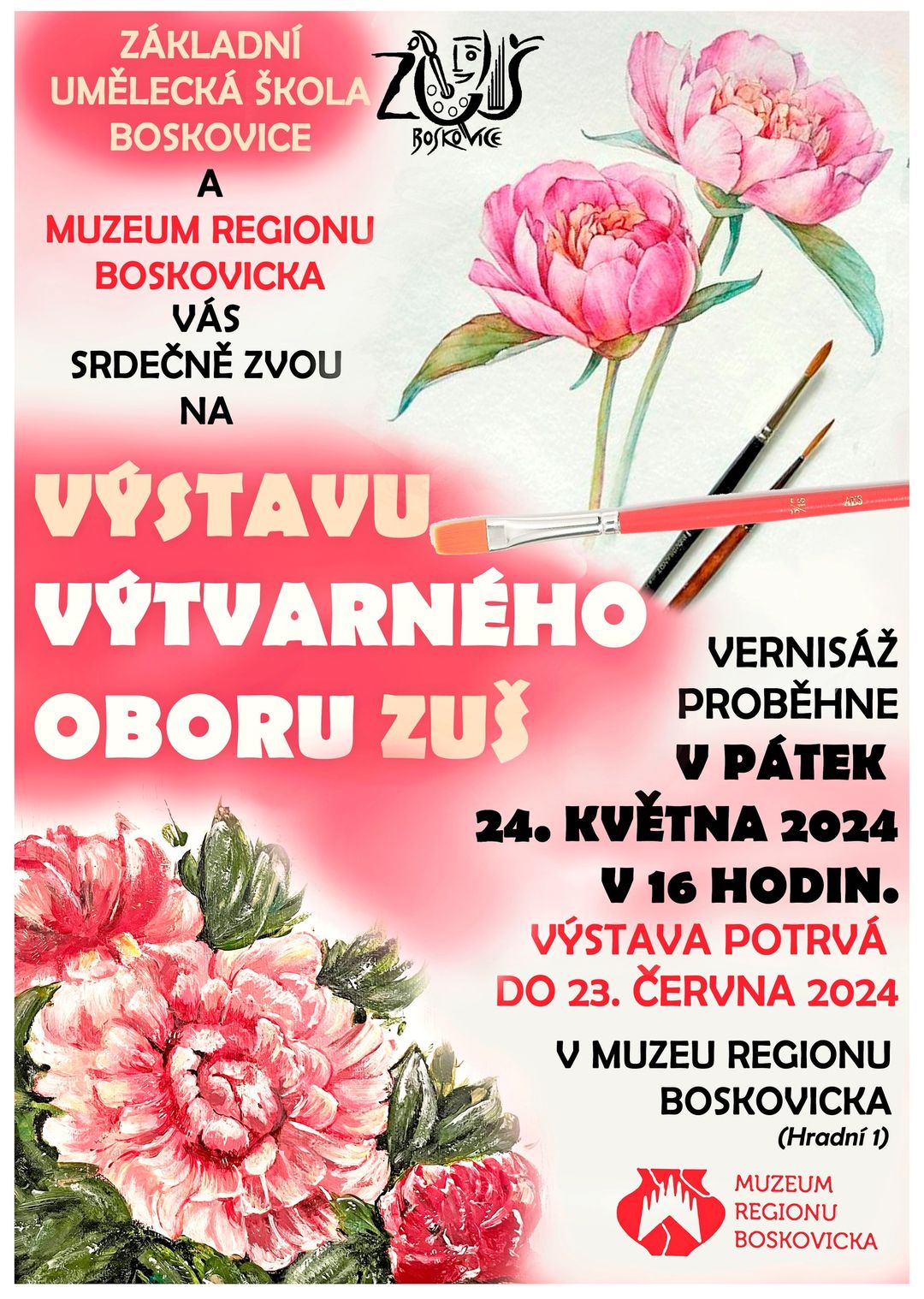 24. května 2024 v 16 hod se uskuteční na Hradní 1 Vernisáž výtvarného oboru Základní umělecké školy Boskovice.